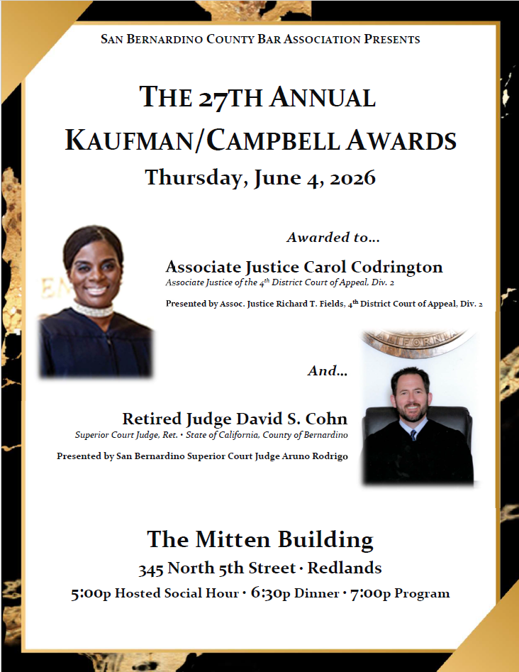 The San Bernardino County Bar Association, The Honorable Joseph B. Campbell American Inn of Court, & the High Desert Bar Association are pleased to present