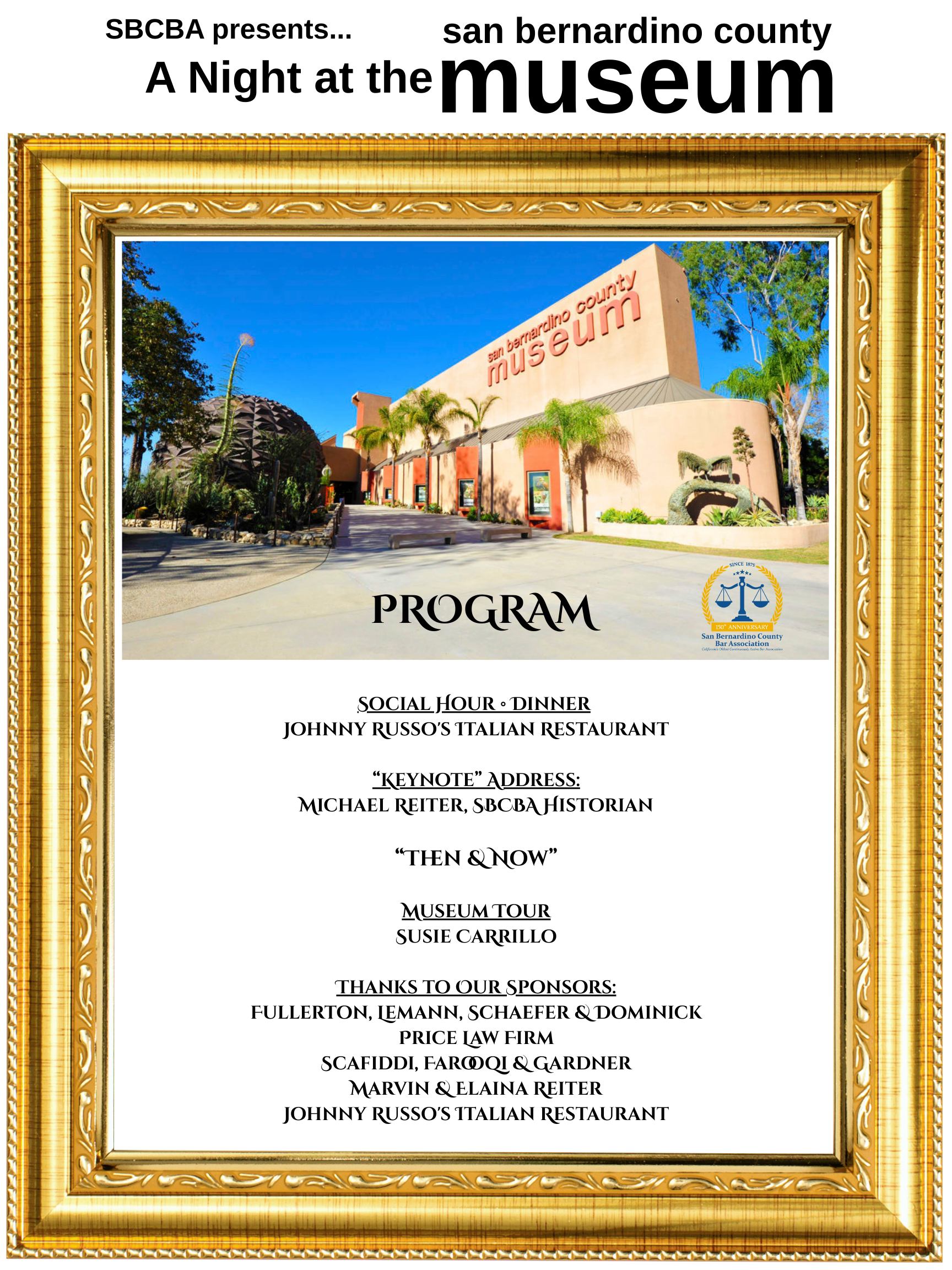 “A Night at the Museum” featured a mixer with hot appetizers and wine at our beautiful San Bernardino County Museum, on Orange Tree Lane in Redlands.